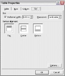 Anyway, to position the text, click in the cell you want to format and then you can either select ?Table Properties? the ?Cell? tab and click on your preference for top, centre or bottom and click OK or????? ???? you can right-click over the cell, select ?Cell Alignment? and then make your choice from the little box that shows to the side.Your cursor should now blink in the position that you have selected.