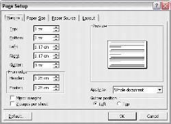 Click on the ?Margin? tab and set the margins as 1cm for top and bottom and 1.17cm for left and right (1.25cm from edge of header & footer). Click on OK.