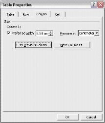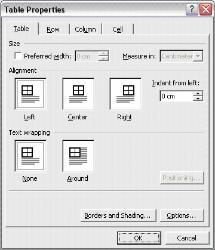 Highlight the first section of the table and either select ?Table Properties? from the ?Table? menu or right-click and select ?Table Properties? from the menu that appears.? You should get a box like this?.