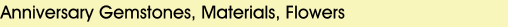 The details given here cover the traditional material, the modern gift,the gemstone ( but there are differing ideas- alternatives given in brackets) and flower